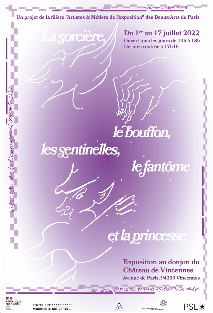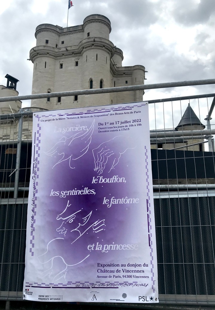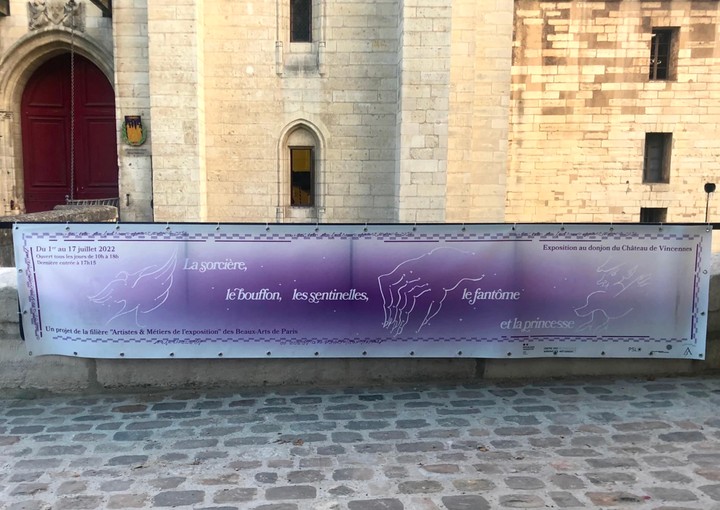 Identity (digital and print) for an exhibition organised by Les Beaux Arts de Paris at Château de Vincennes, Paris. Design of the poster and the tarpaulin.