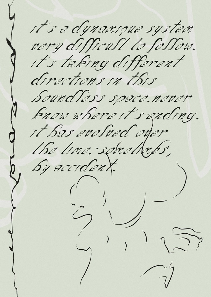 Creation of the typefaces: “Cordial” is based on my hand writting and "Light sleep" is a typeface inspired by our different steps of sleep from my drawings. (Available on resquest). All the typefaces are inspired by my drawings.